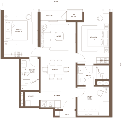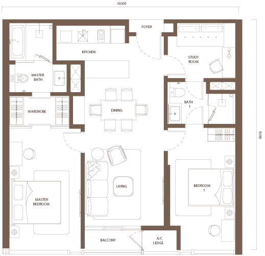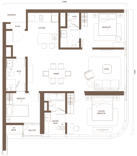 Ranging from 1,093 sq.ft. to 2,464 sq.ft.